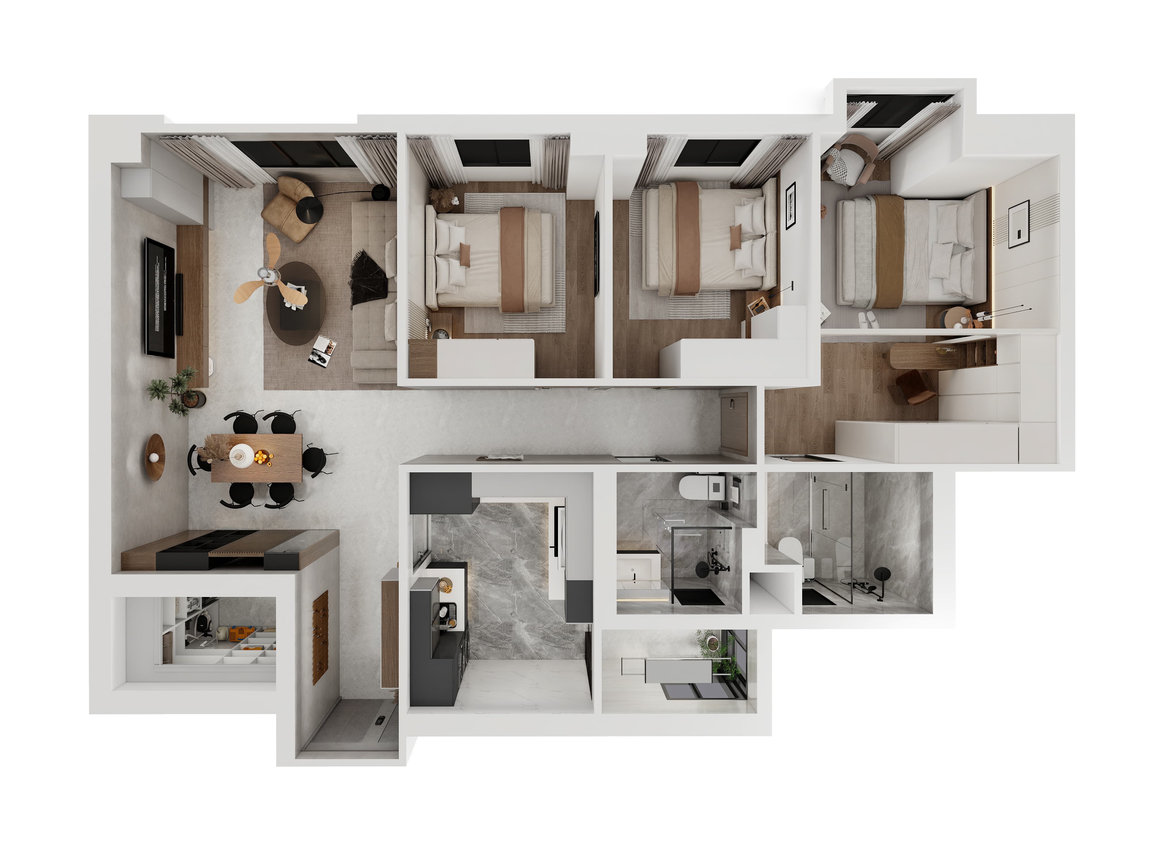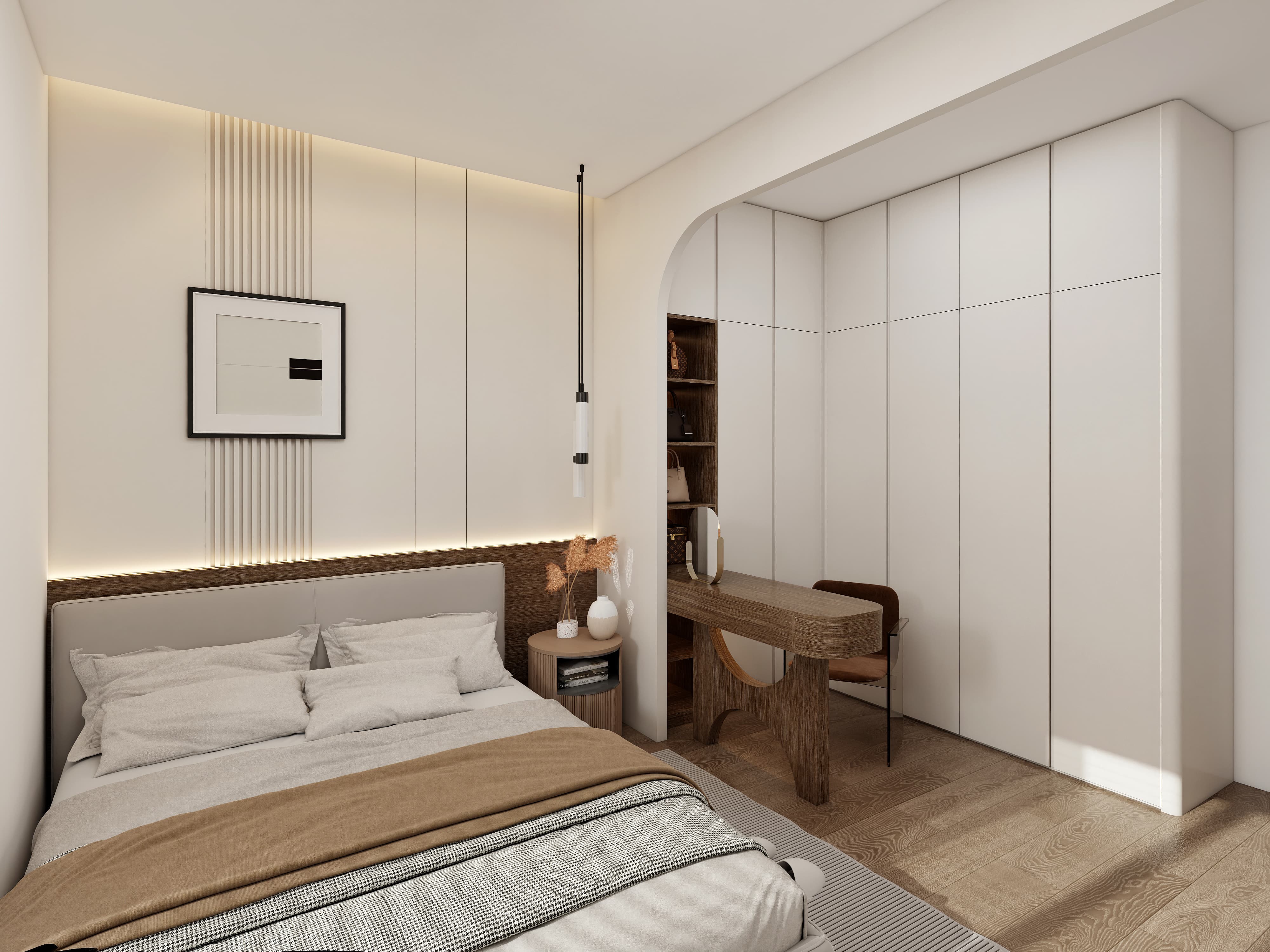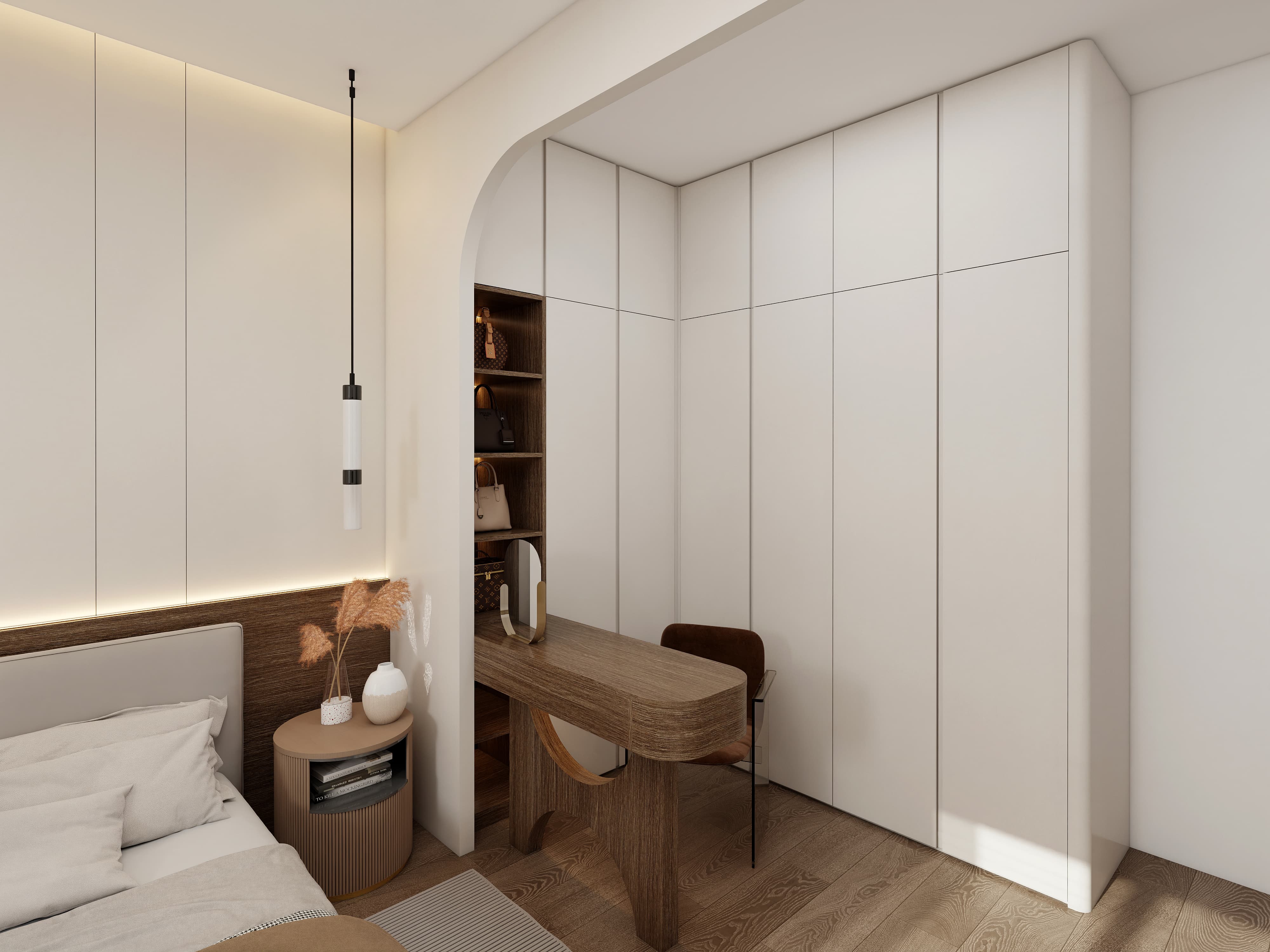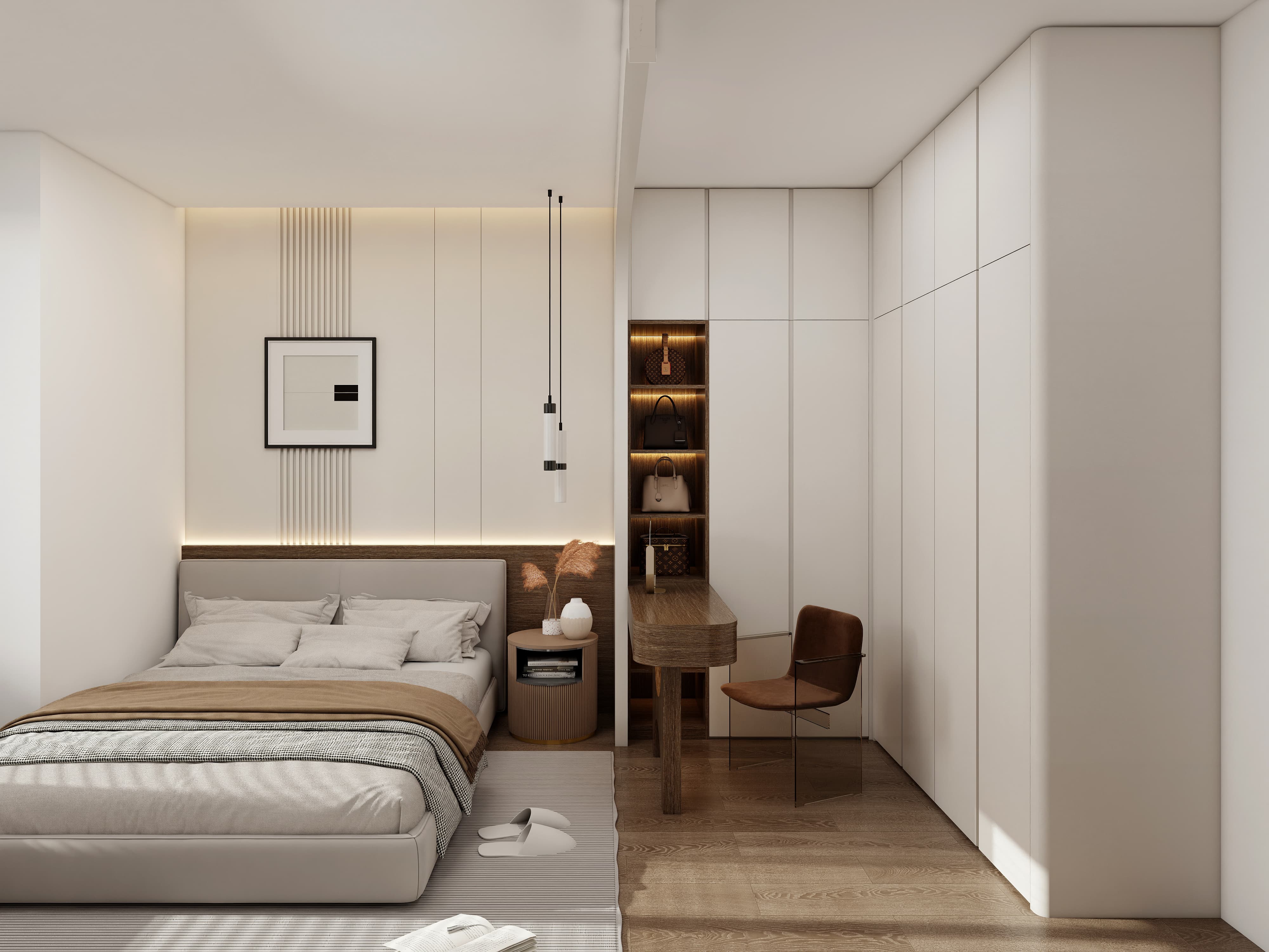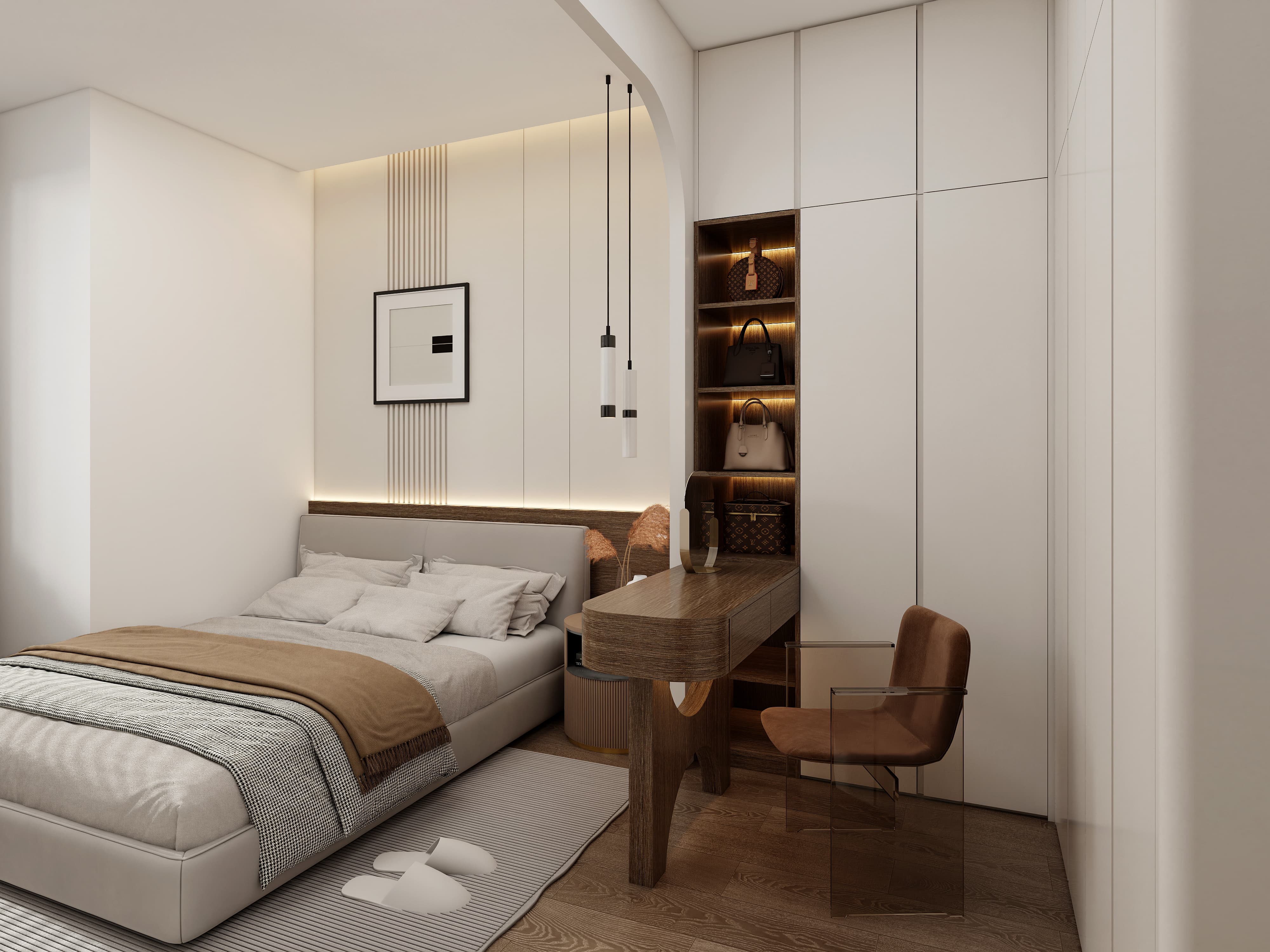 This unique 4-room BTO blends raw industrial elements with organic wabi-sabi aesthetics. Exposed concrete, black steel accents, and reclaimed wood harmonize with imperfect textures and natural imperfections, creating a soulful urban sanctuary.