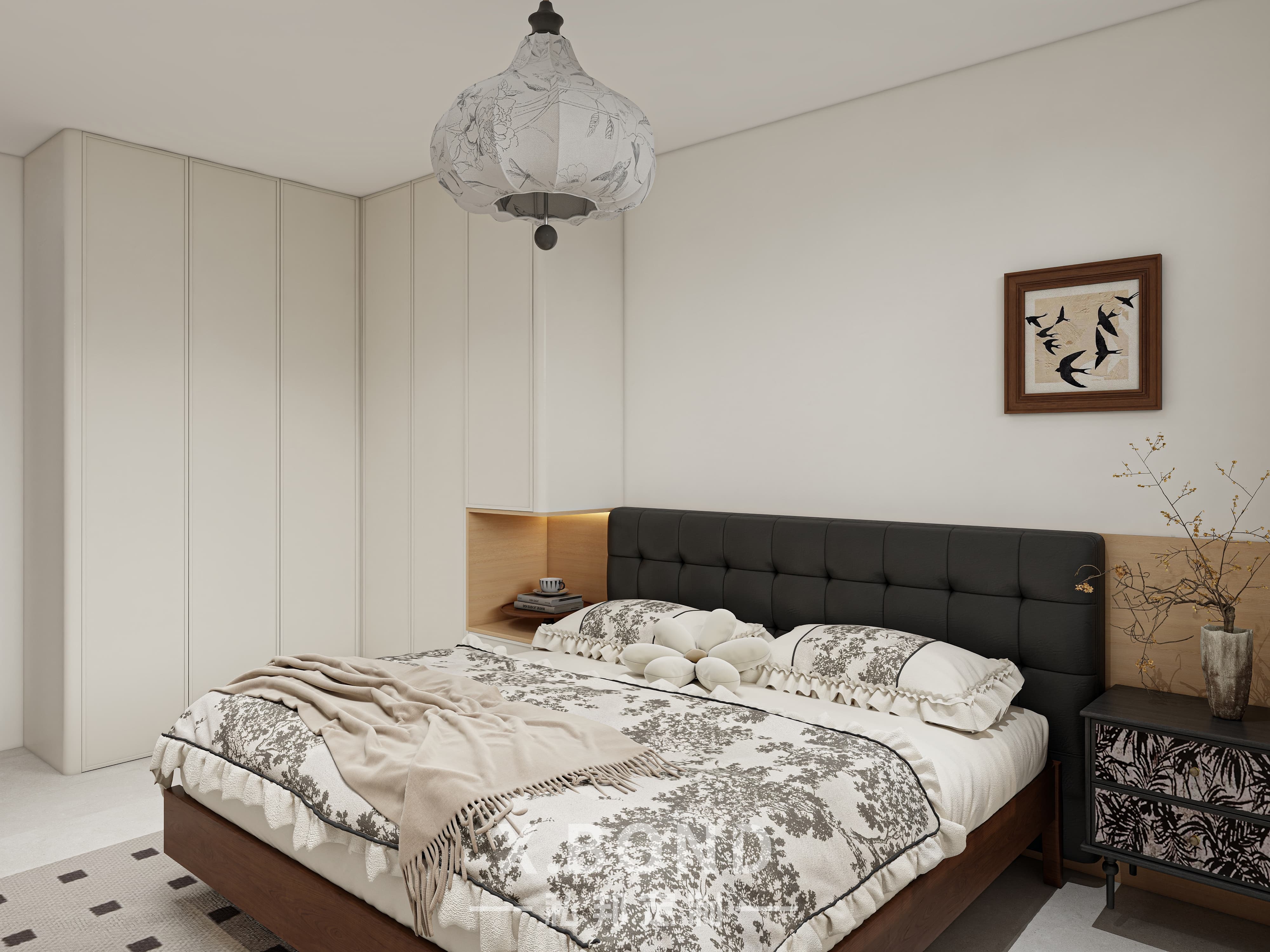 This 5-room HDB showcases a unique "Bone and Wood" aesthetic, blending Scandinavian minimalism with warm organic textures. The design features light oak cabinetry, black-framed glass partitions, and custom built-ins. Soothing neutral tones are accented by strategic orange highlights and curated decor.