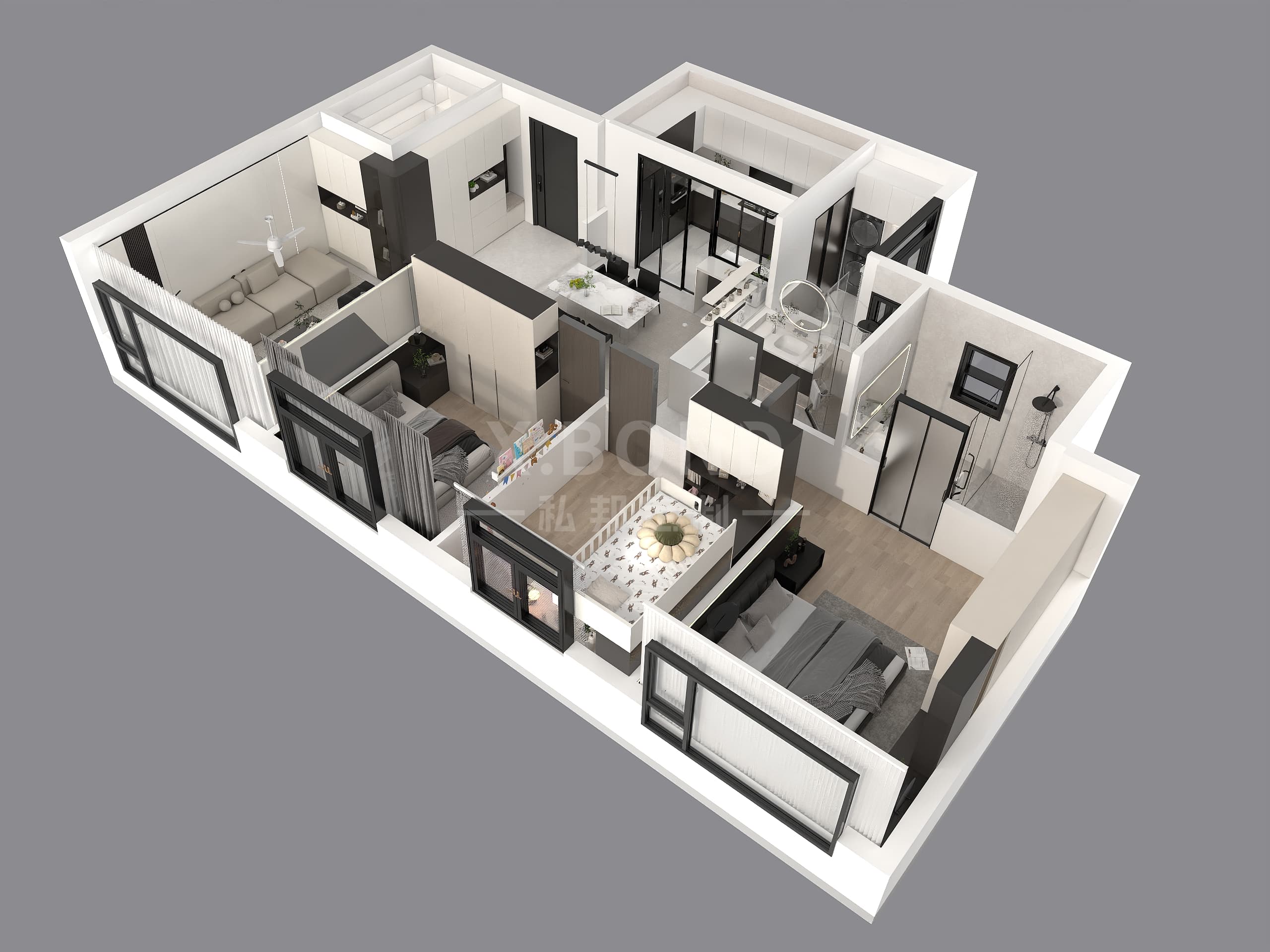 This 4-room HDB showcases contemporary design with a neutral palette, featuring a sleek living area with wooden slat accents, a functional L-shaped kitchen, and smart storage solutions. The children's room includes a space-saving bunk bed with study desks, while the master bedroom offers a serene retreat with curated decor.